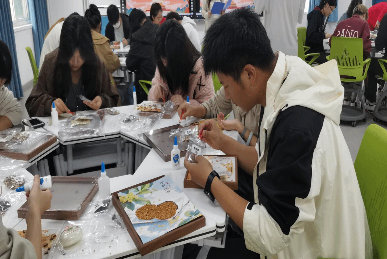 “中药香氛画”“竹编”二个非遗手工实践体验在花园路校区同时开展。