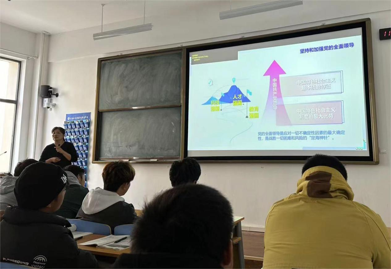 11月15日上午,校长李志萍在航空港校区博思楼224教室为水利工程系2023级水工1、2班学生讲授形势与政策课。