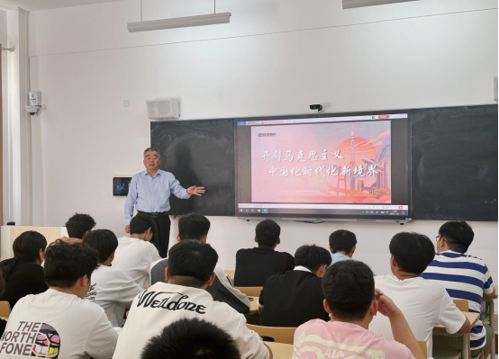 课上,张志淮以“开辟马克思主义中国化时代化新境界”为主题,围绕习近平新时代中国特色社会主义思想创立和发展的时代背景、主要内容和系统科学理论体系等重点内容,结合丰富的案例进行了详细解读。他强调,要从历史逻辑、理论逻辑和实践逻辑相统一的高度,从整体上把握这一思想的科学体系,不断增进“四个认同”,争当新思想的坚定信仰者、忠实实践者,并寄语学生要坚定不移听党话、跟党走,志存高远、脚踏实地。作为水利系的学生,要潜心了解水利专业学习方法,认真学习水利专业知识,坚持与时俱进,培养创新能力,练就过硬本领,自觉担负起时代赋予的使命与责任。