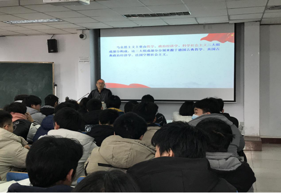 12月11日,校党委书记王立正紧扣时代主题和学生关注的热点话题,以自己在工程领域多年的经验,将理论与实践相结合,通过大量详实案例,为信息工程系20计算机-企信1.2班、计算机4.5.6班的200余名同学分别上了一堂题为《崇高的理想信念》的思政课,从什么是理想信念、马克思主义是什么、为什么要信仰马克思主义逐渐延伸到中国特色社会主义是我们的共同理想,要胸怀共产主义远大理想,并赠给学生们4条寄语,鼓励大家要将自己的奋斗目标与国家的命运结合起来,肩负起青年的责任和使命。王书记90分钟的授课,有高度、又接地气,有理有据又生动有趣,在学生中间引起了不同的反响。